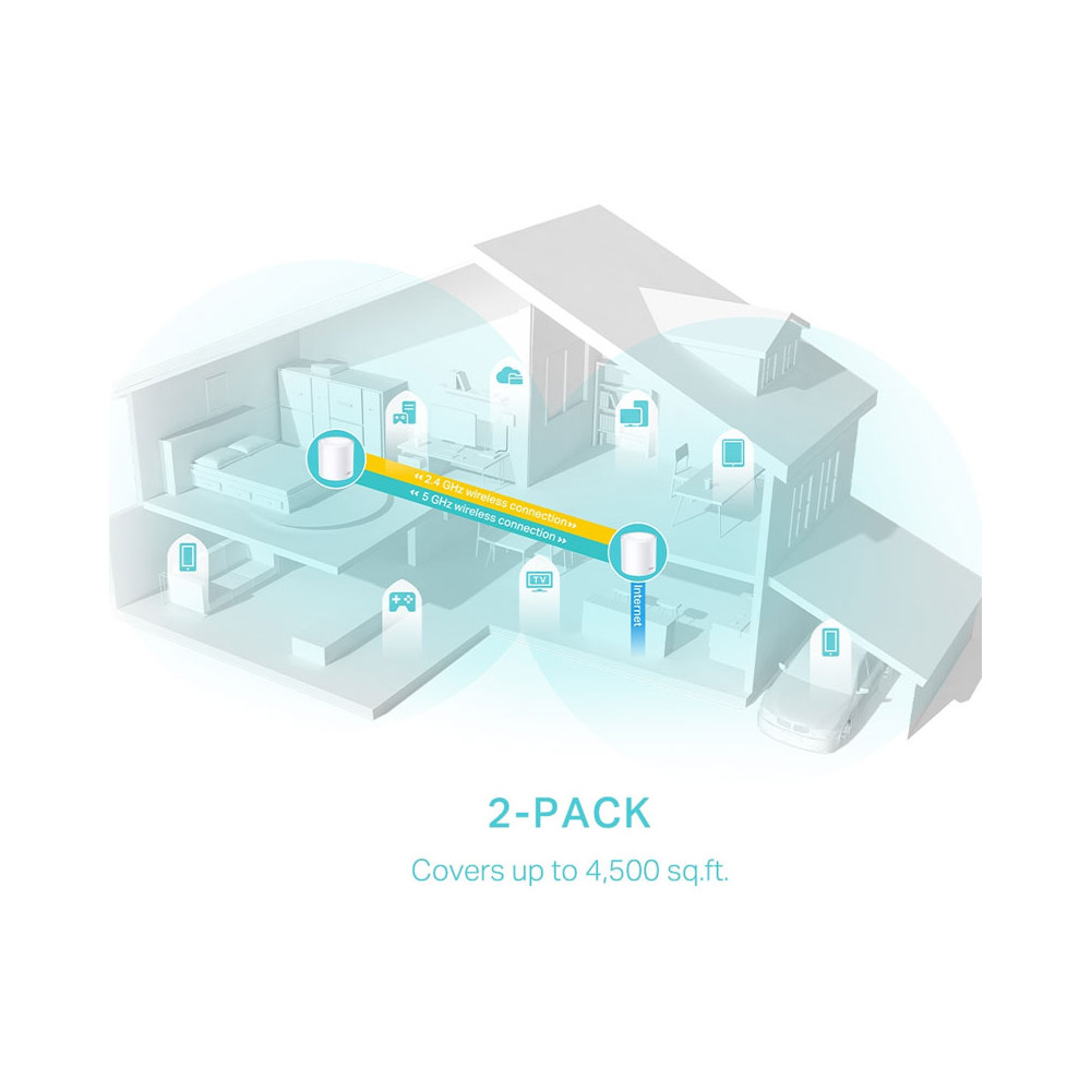 Le Deco X50 est le moyen le plus simple de garantir un signal WiFi puissant dans toutes les pièces de votre maison ou de votre bureau. Il permet une couverture jusqu’à 250m² pour le pack de 2. En ajoutant un second pack, vous pouvez doubler cette couverture pour atteindre 500m².
