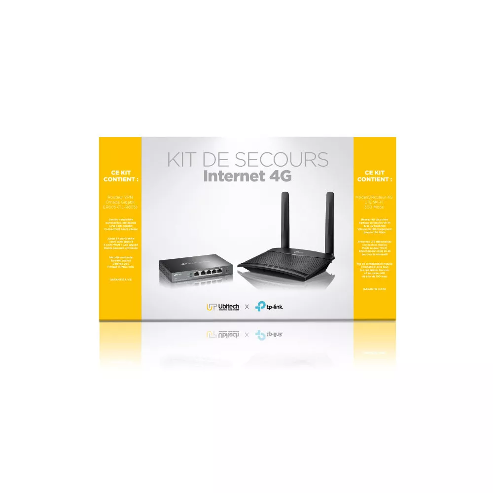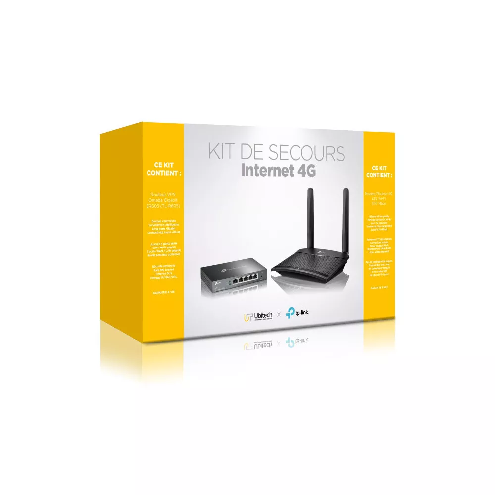 Ce kit de secours 4G d'Ubitech est composé de deux équipements réseau de la marque TP-Link.