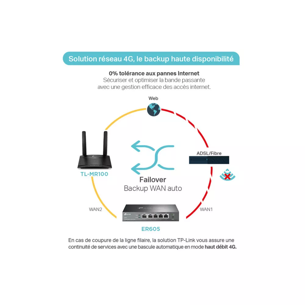 Si vous utilisez une box internet en fibre ou en ADSL par exemple et que cette dernière vient à perdre sa connexion, le système bascule automatiquement sur le routeur 4G.