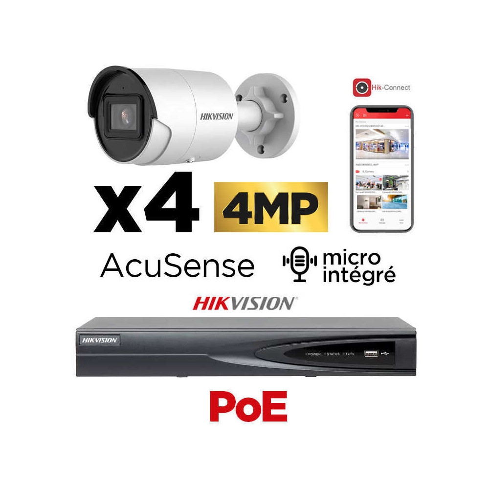 Ce kit est composé de 4 caméras de surveillance 4MP avec la technologie AcuSense qui permet grâce à un système d'intelligence artificielle de limiter les fausses alertes avec une très grande précision. La caméra ne détecte que les humains et/ou les véhicules.