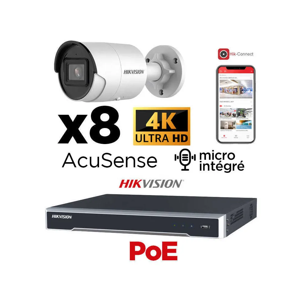 Ce kit est composé de 8 caméras de surveillance 4MP avec la technologie AcuSense qui permet grâce à un système d'intelligence artificielle de limiter les fausses alertes avec une très grande précision. La caméra ne détecte que les humains et/ou les véhicules.