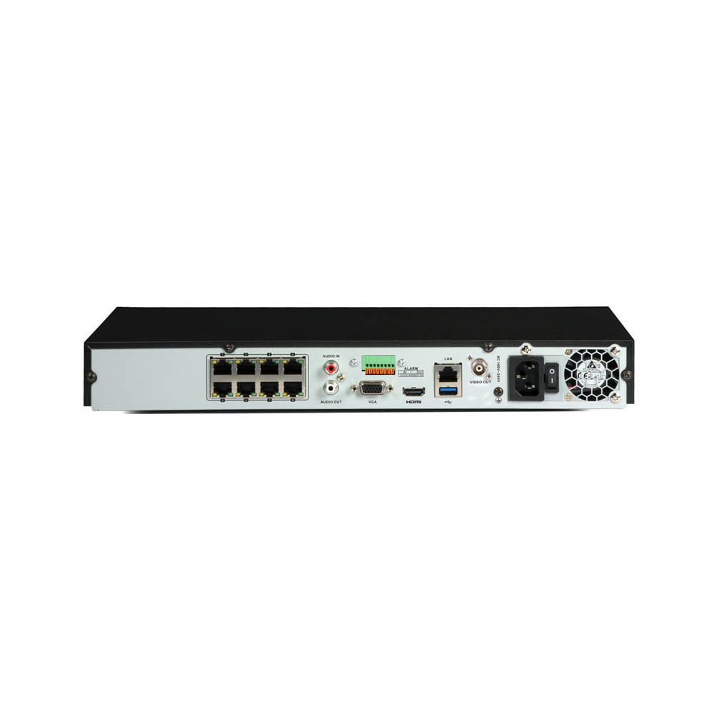 Ce NVR très haute performance permet de connecter jusqu'à 8 caméras IP 4K ou de résolutions inférieures. Les caméras peuvent être directement connectées aux ports PoE du NVR ou sur le réseau sur lequel est installé le NVR.