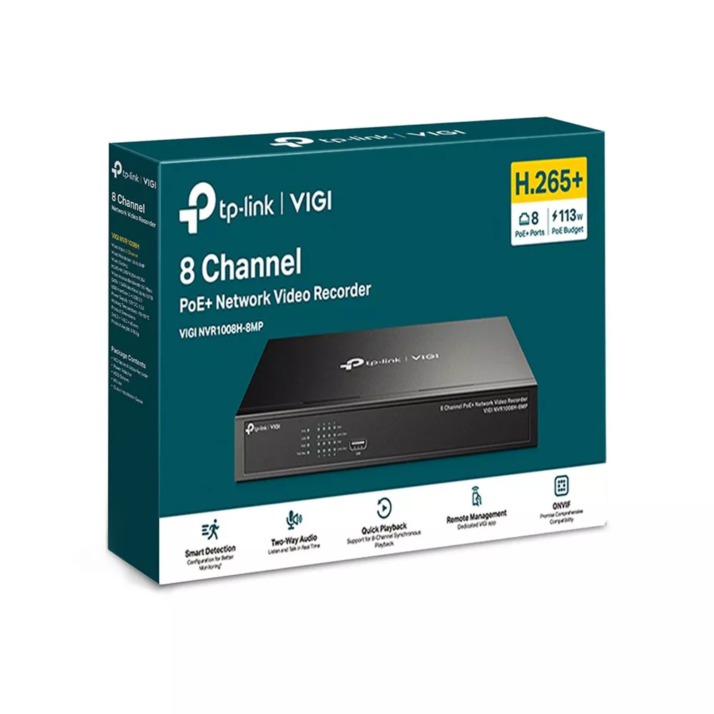 L'enregistreur vidéo VIGI NVR1008H-8MP est un enregistreur vidéo réseau PoE+ de qualité professionnelle de la marque TP-Link. Il est conçu pour répondre à vos besoins en matière de sécurité vidéo.