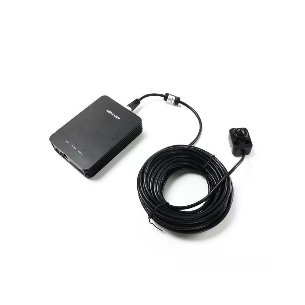 La caméra DS-2CD6425G1-20(28mm)(8m) est composée d'un bloc principal qui gère l'intelligence de la caméra, d'une caméra pinhole et d'un câble de 8 mètres qui relie la caméra au bloc principal.