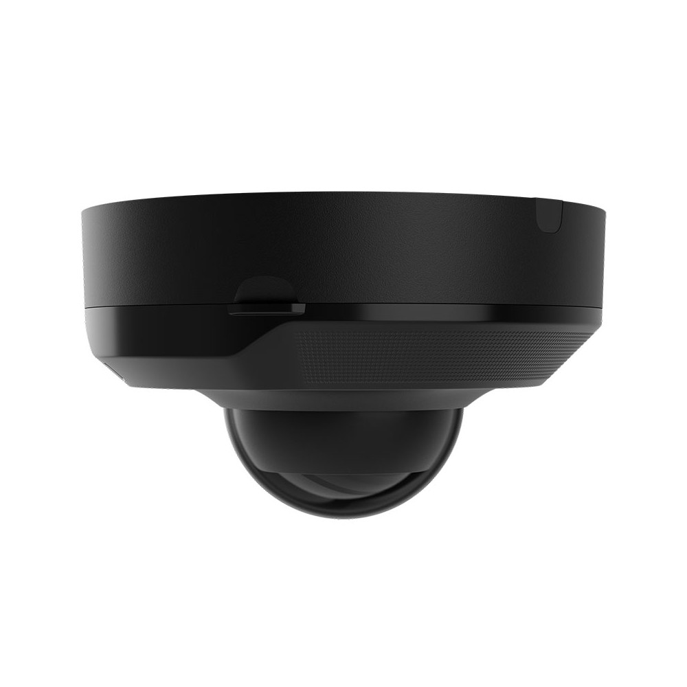 Le boîtier possède un indice de protection IP65 et IK08 pour une installation en intérieur ou en extérieur, avec alimentation PoE ou 12 V et prise en charge des codecs H.264 et H.265.