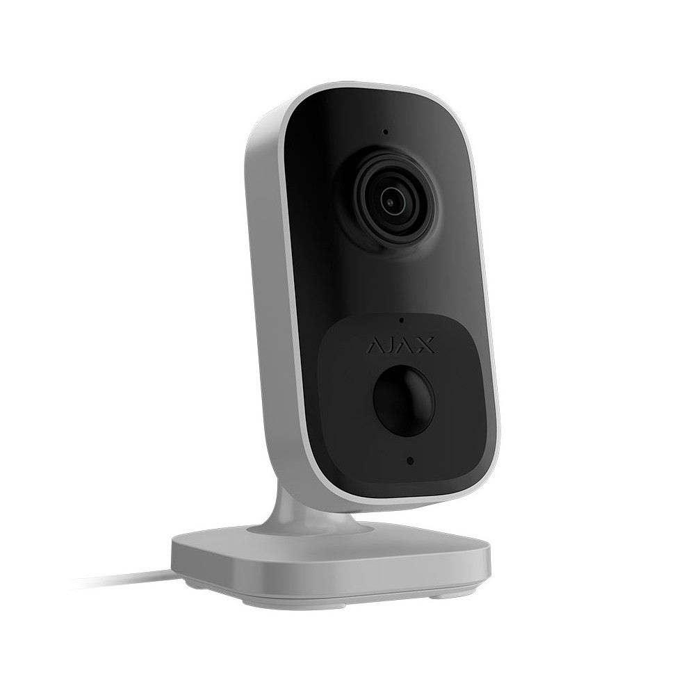 La caméra de surveillance Ajax IndoorCam blanche avec une résolution de 4 MP s’adresse aux installations de vidéosurveillance intérieure qui nécessitent une image détaillée et une intégration avec un système d’alarme Ajax.