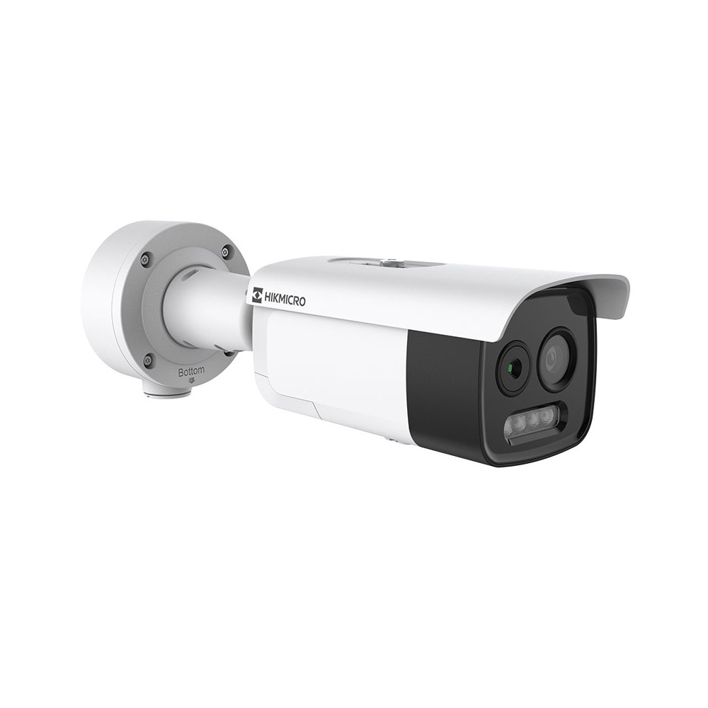 Cette caméra de surveillance thermique et optique bi-spectre d’Hikvision combine un module thermique 256 × 192 et un module optique 5 MP pour la surveillance extérieure périmétrique.
