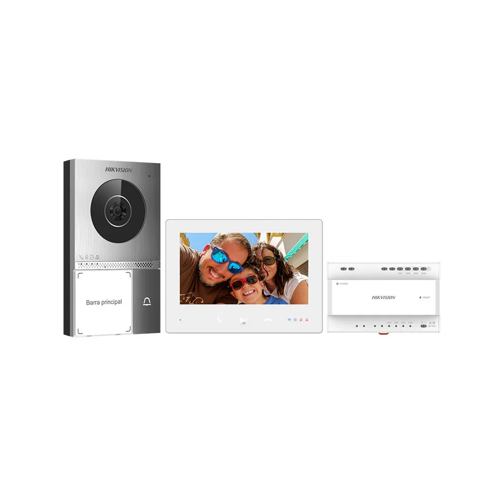 L'interphone vidéo Hikvision DS-KIS705EY est un kit 2 fils premium full HD avec une caméra 2 MP grand angle de 135°, la gestion du WDR.