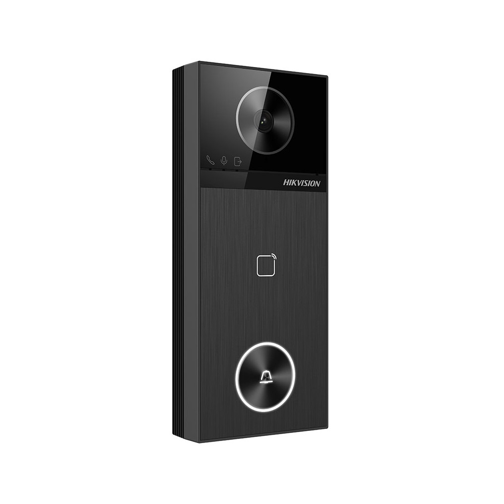 Le portier vidéo IP d'Hikvision DS-KV6114-WBE1 s’adresse aux installations résidentielles de type villa qui nécessitent à la fois une visiophonie extérieure et un contrôle d’accès. Ce modèle combine une caméra couleur 4 MP grand angle, une vision nocturne par infrarouge, la gestion de deux verrous et plusieurs méthodes de déverrouillage, dont la carte MIFARE, le Bluetooth et l’application mobile Hik-Connect.