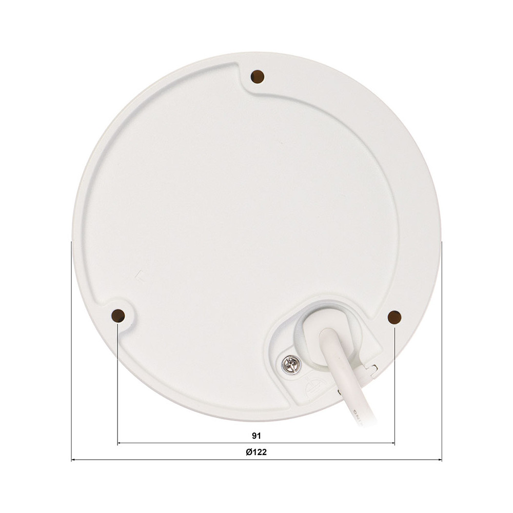 La focale fixe de 2,8 mm assure un champ de vision horizontal de 104° adapté à la surveillance de zones larges, avec un boîtier certifié IP67 et IK10 pour une utilisation en extérieur.