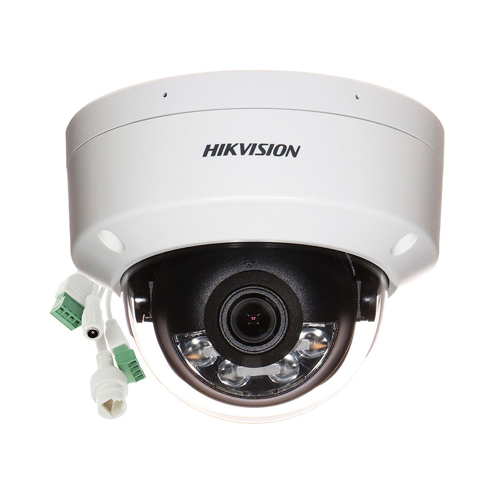 La caméra de surveillance DS-2CD2143G2-LIS2U(2.8mm) d'Hikvision fonctionne avec un capteur 4 MP au format 1/3" et un objectif fixe de 2,8 mm pour une résolution maximale de 2688 × 1520 pixels.