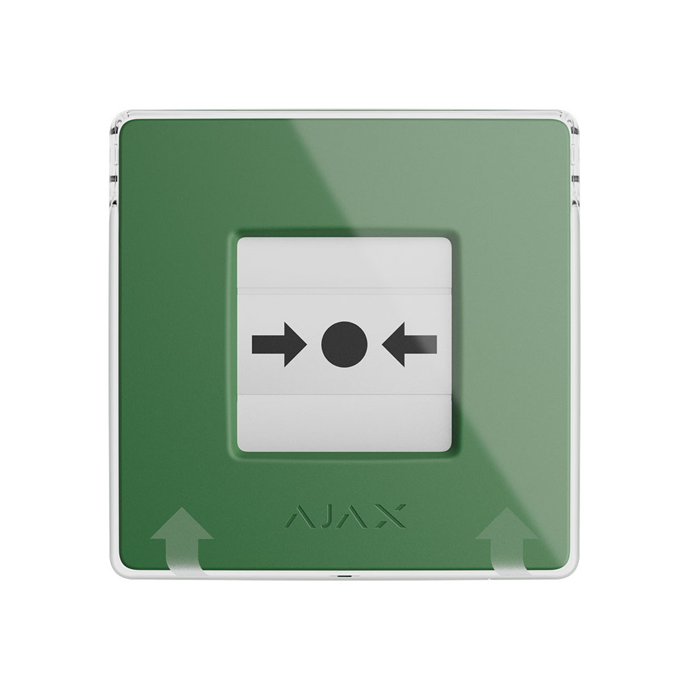 Ce modèle vert fonctionne avec le protocole radio Jeweller, dispose d’un mécanisme de bouton réarmable à clé et s’intègre aux détecteurs incendie, sirènes et dispositifs d’automatisation du système.