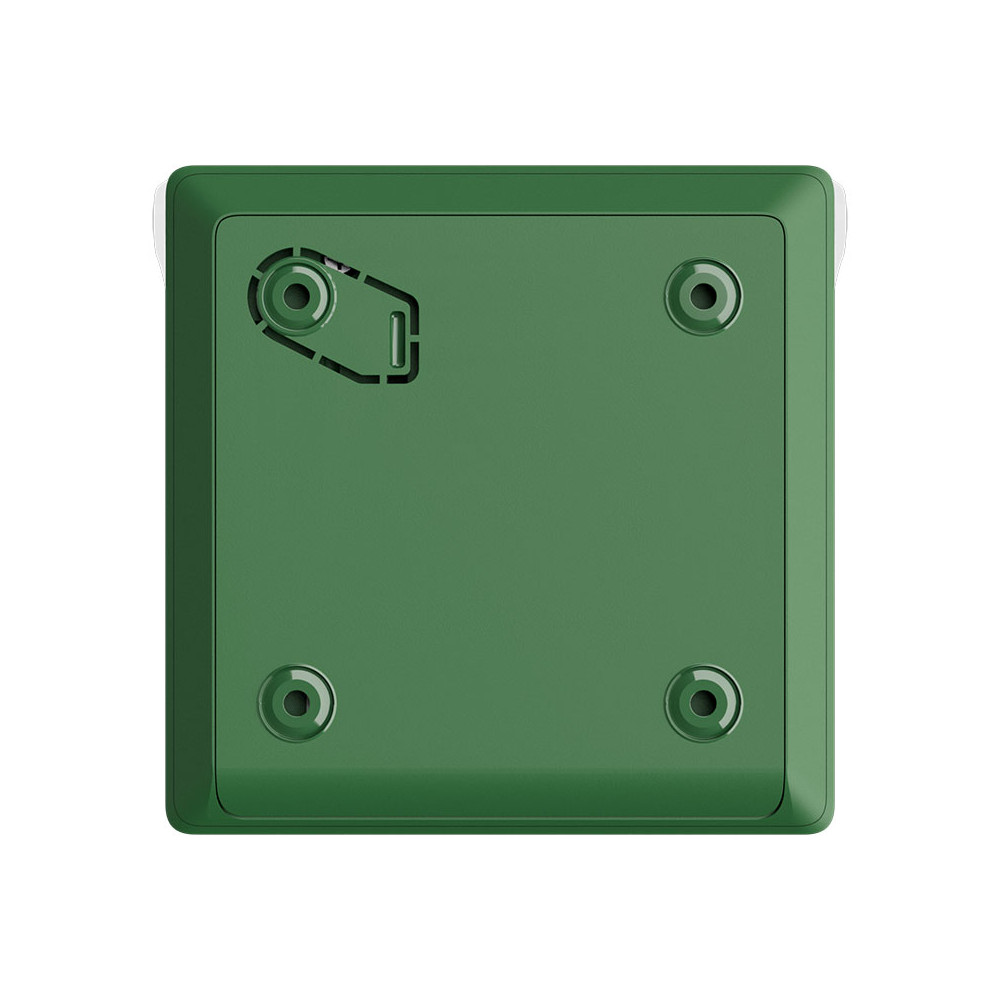 Le déclencheur manuel Ajax Manual CallPoint (Green) Jeweller en version verte présente des dimensions d’environ 102 × 104 × 39 mm, adaptées à une installation murale standard dans des locaux tertiaires, industriels ou recevant du public.