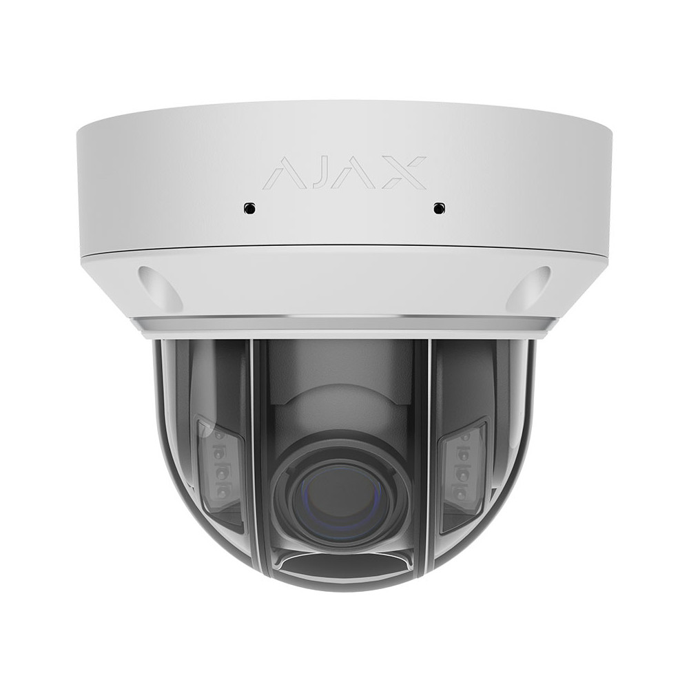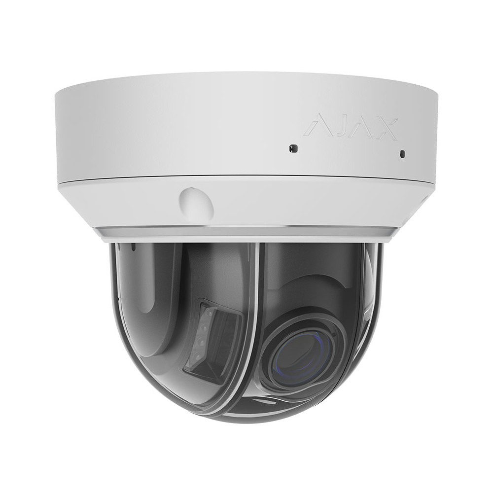 La caméra de surveillance Ajax DomeCam HLVF (5 Mp) travaille en 5 MP avec une focale varifocale motorisée de 2,8 à 12 mm pour couvrir aussi bien les vues d’ensemble que les plans serrés.