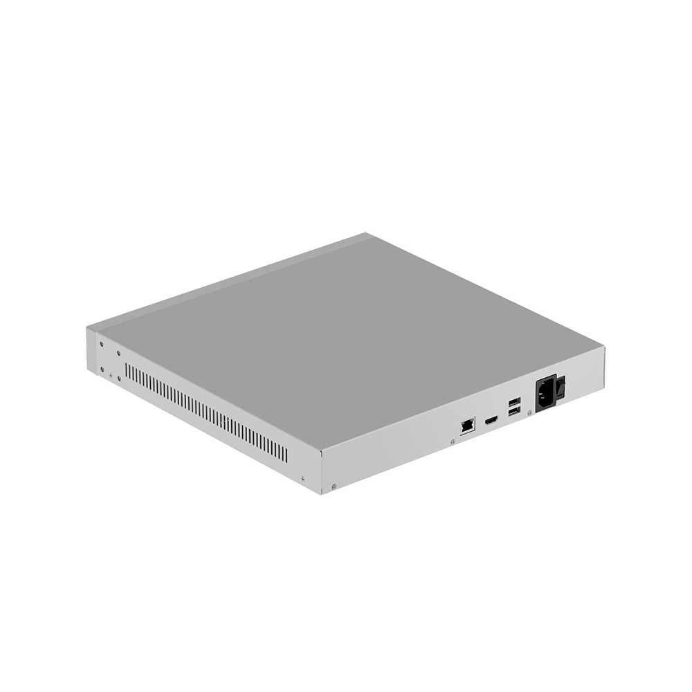 Le NVR Ajax NVR H2DAC (16-ch) est conçu pour une installation en armoire ou en local technique avec un câblage classique réseau et USB. Il possède un port HDMI 4K pour l’écran, et plusieurs ports USB pour les périphériques de contrôle et l’export des vidéos. Le modèle NVR H2DAC ne dispose pas de ports PoE pour alimenter directement les caméras, les caméras doivent donc être alimentées et raccordées au réseau via un switch ou une infrastructure existante.