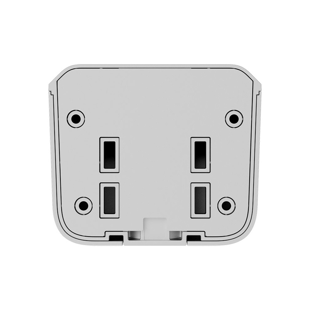 Le support mural Ajax MountCam B2 White prévoit des loquets pour le passage des câbles et un espace interne pour organiser les connexions. Le câblage reste ainsi protégé à l’intérieur du support, ce qui limite l’exposition aux intempéries et aux manipulations et donne un rendu propre sur la façade.