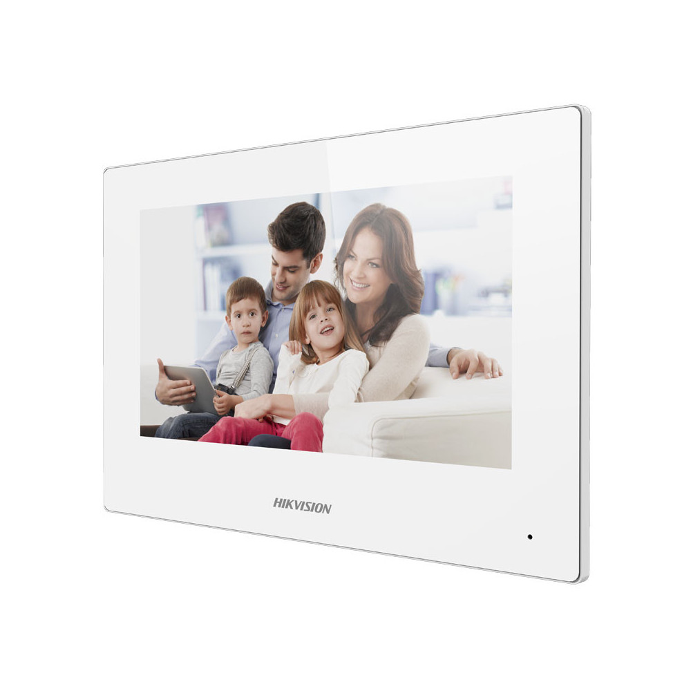 Le moniteur vidéo DS-KH6320-WTE1-W convient aussi bien pour les maisons individuelles que pour les entreprises ou les immeubles d'habitations collectives. L'écran intérieur LCD est un écran tactile lumineux de 7" qui permet de répondre à ses interlocuteurs et de gérer des actions telles qu'ouvrir une porte par exemple (sous réserve de posséder une serrure connectée compatible).