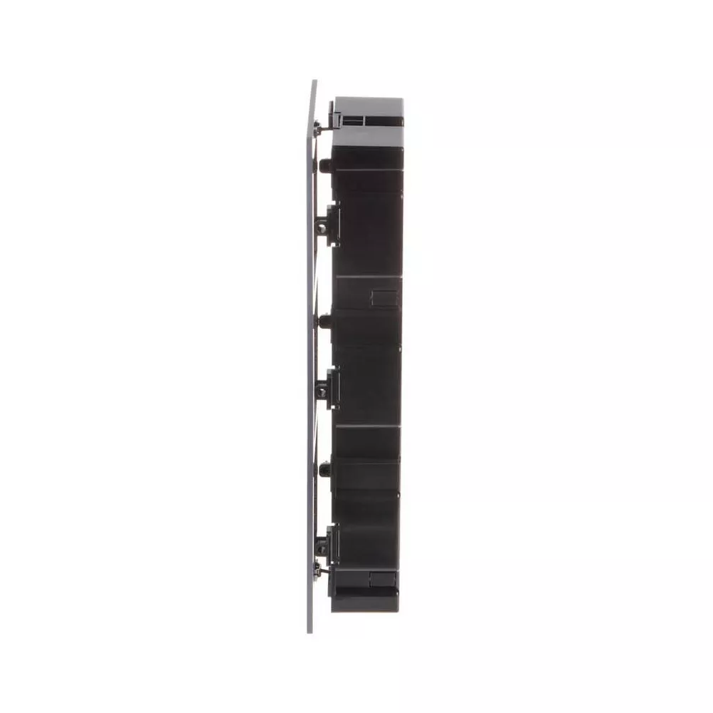 Ce boîtier est composé de deux parties, une boite de jonction à intégrer dans le mur et une façade en aluminium aéronautique très esthétique pour couvrir les modules.